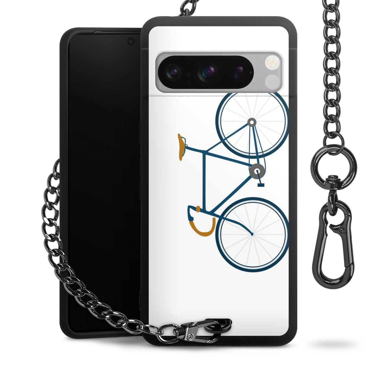 - Mattschwarze Handyhülle mit Metallkette