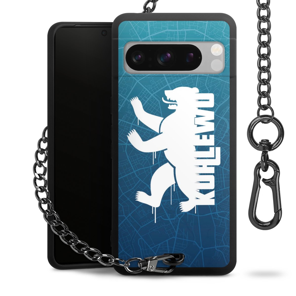 Die mattschwarze Silikon-Handyhülle besteht aus robustem TPU (thermoplastisches Polyurethan). Sie ist flexibel und schützt Dein Smartphone vor Stößen und Kratzern. Die Kette sowie der Karabinerhaken sind aus Metall in Gunmetal-Optik gefertigt. Für dieses Produkt kommen ausschließlich TÜV-geprüfte Materialien zum Einsatz.