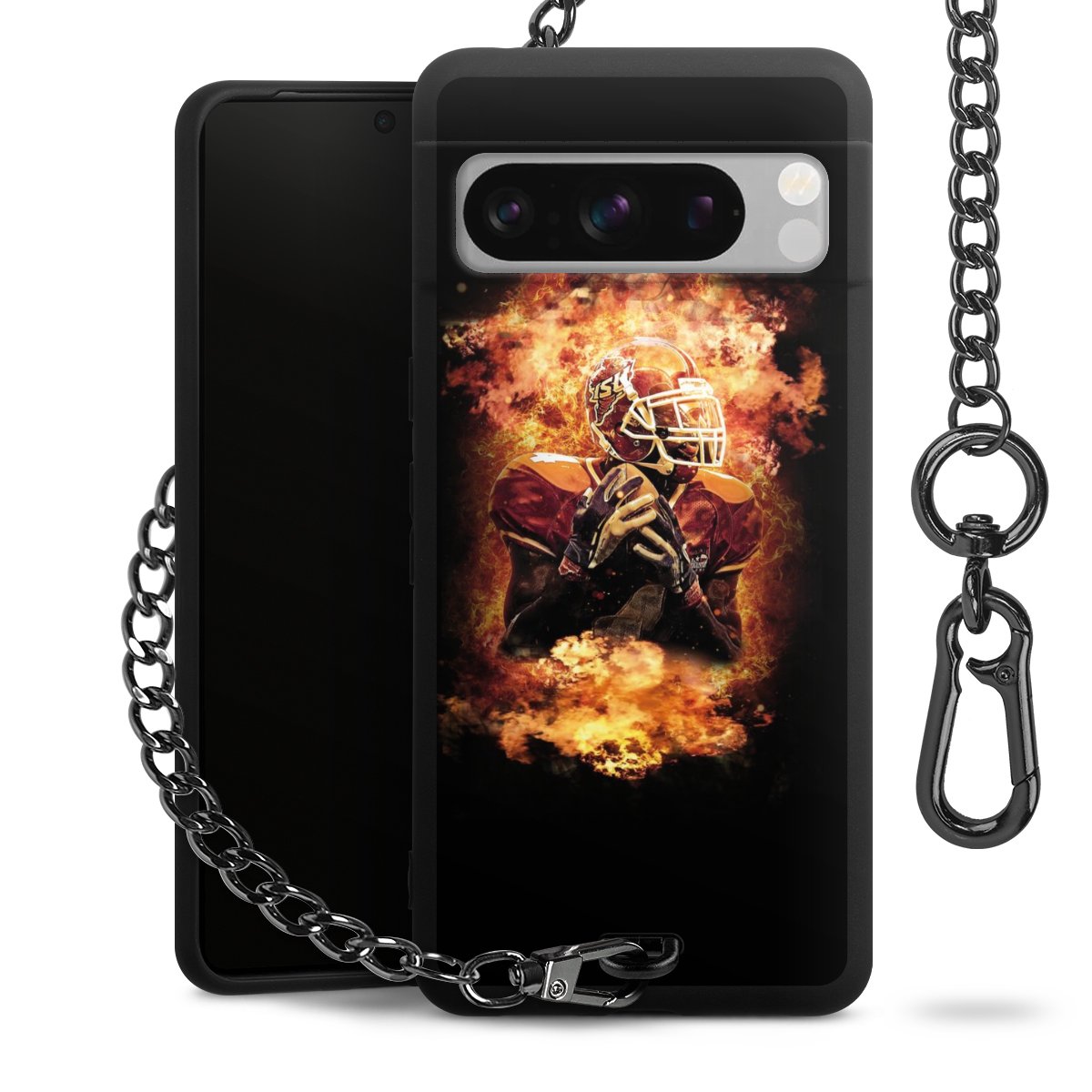 • Mattschwarze Handyhülle mit Metallkette