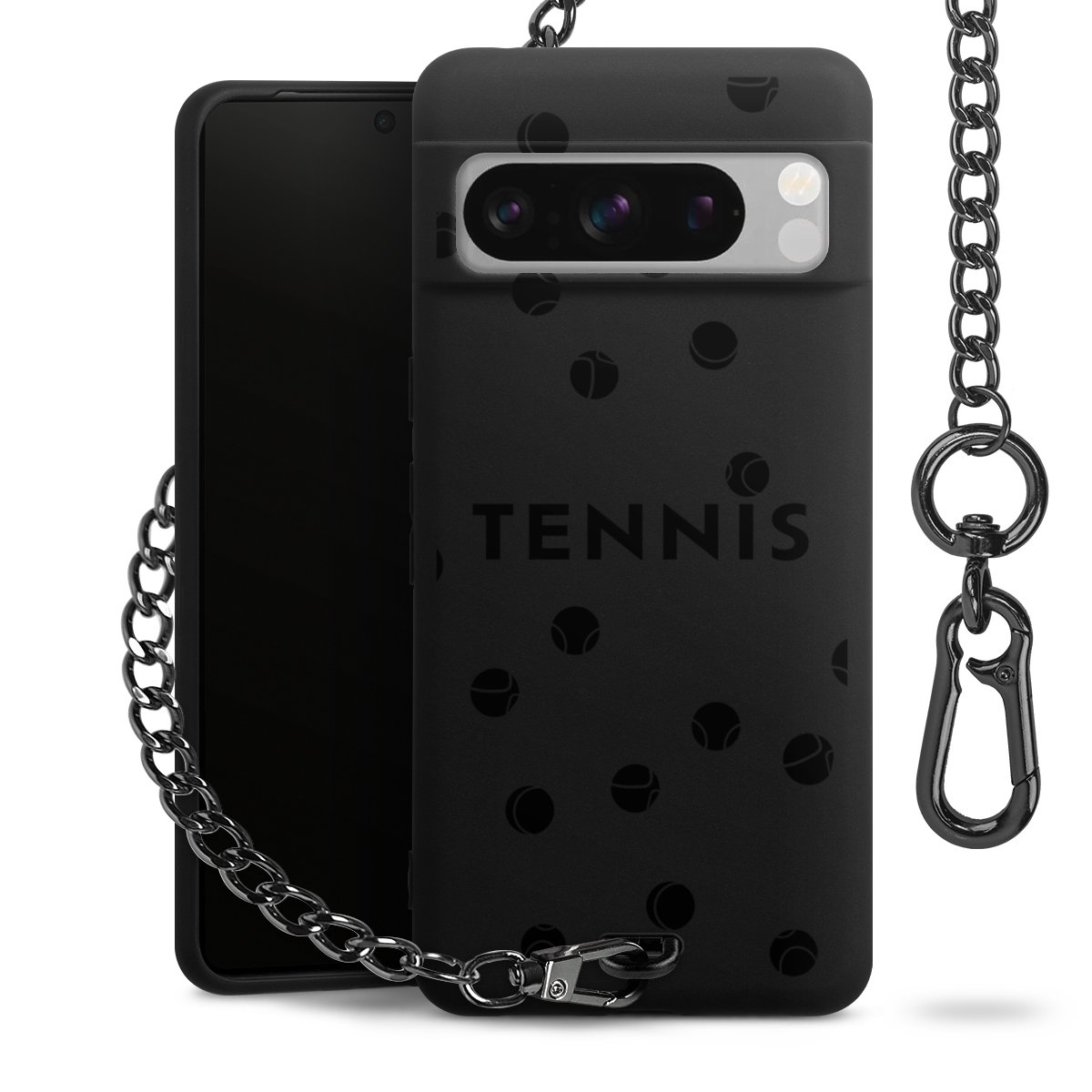 • Mattschwarze Handyhülle mit Metallkette