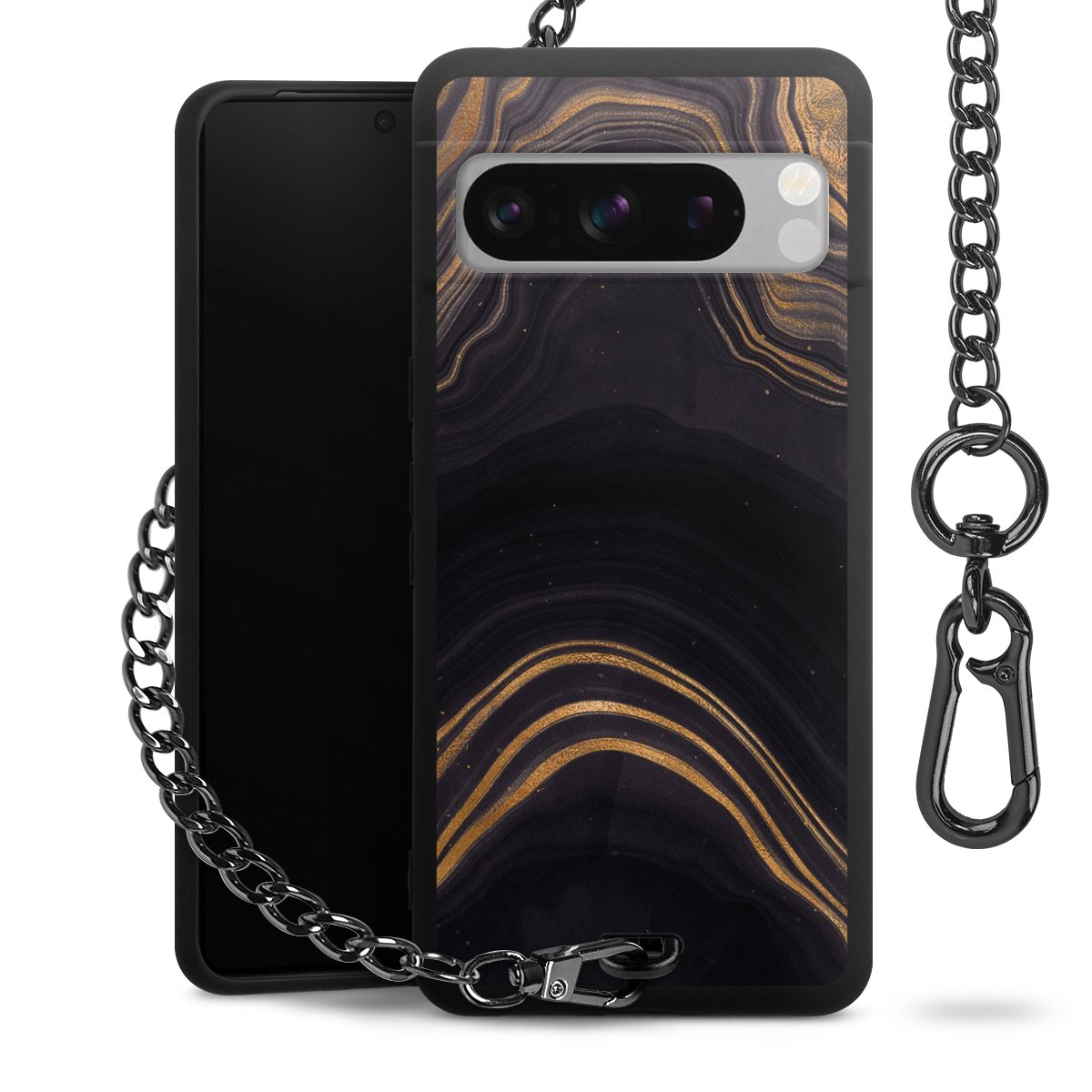 • Mattschwarze Handyhülle mit Metallkette