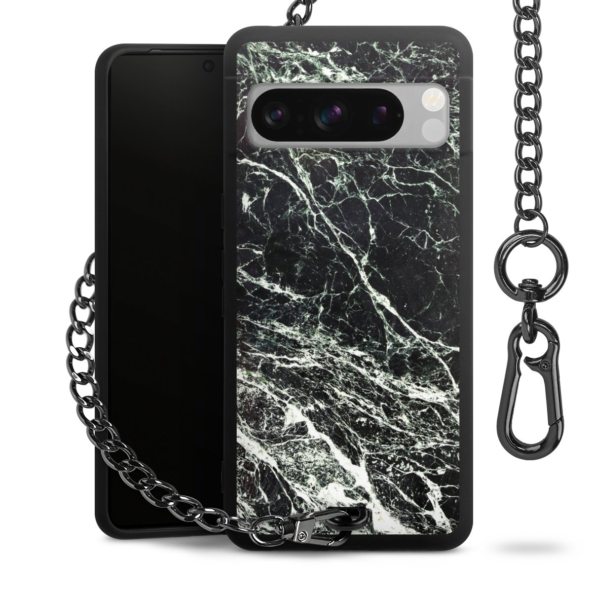 - Mattschwarze Handyhülle mit Metallkette