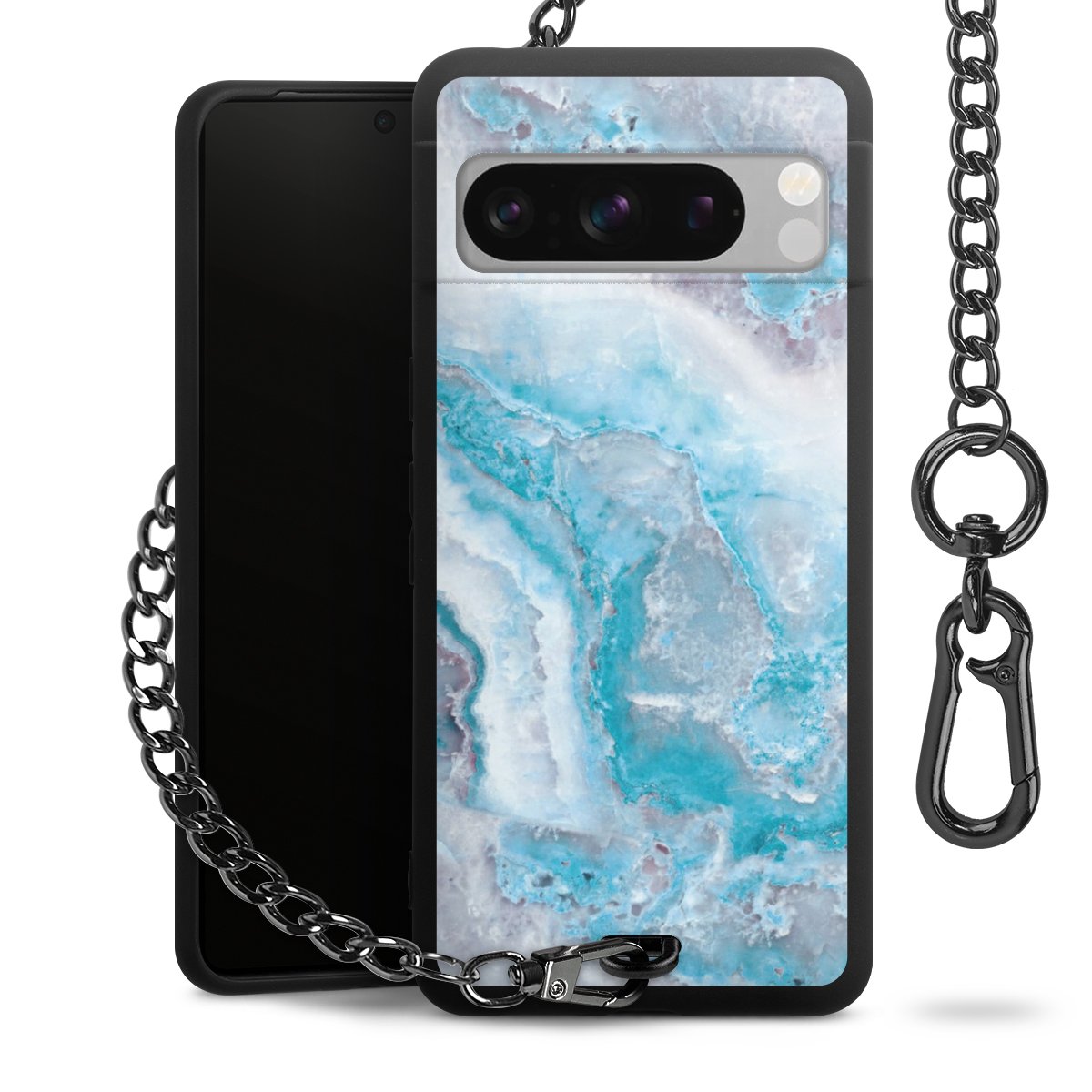 • Mattschwarze Handyhülle mit Metallkette