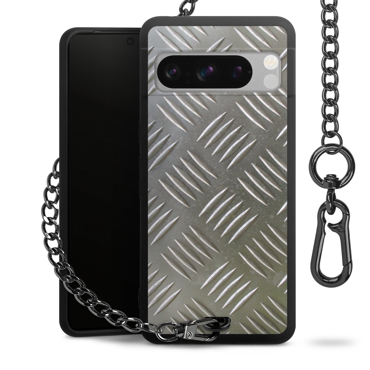 • Mattschwarze Handyhülle mit Metallkette