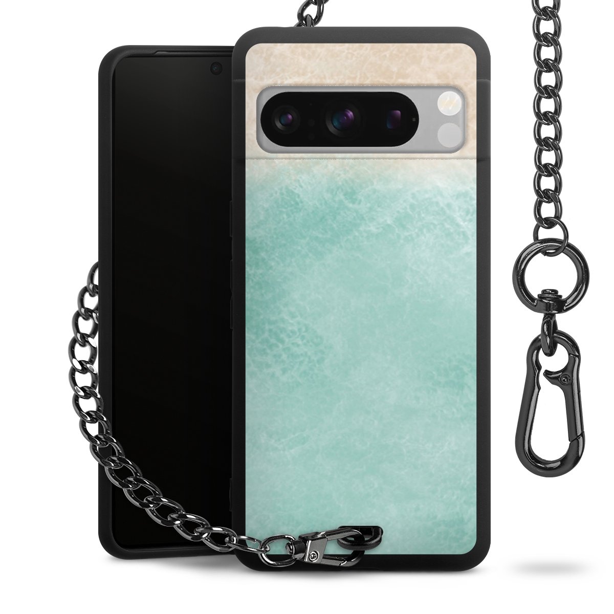 • Mattschwarze Handyhülle mit Metallkette
