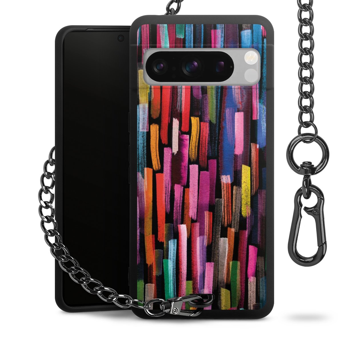 • Mattschwarze Handyhülle mit Metallkette