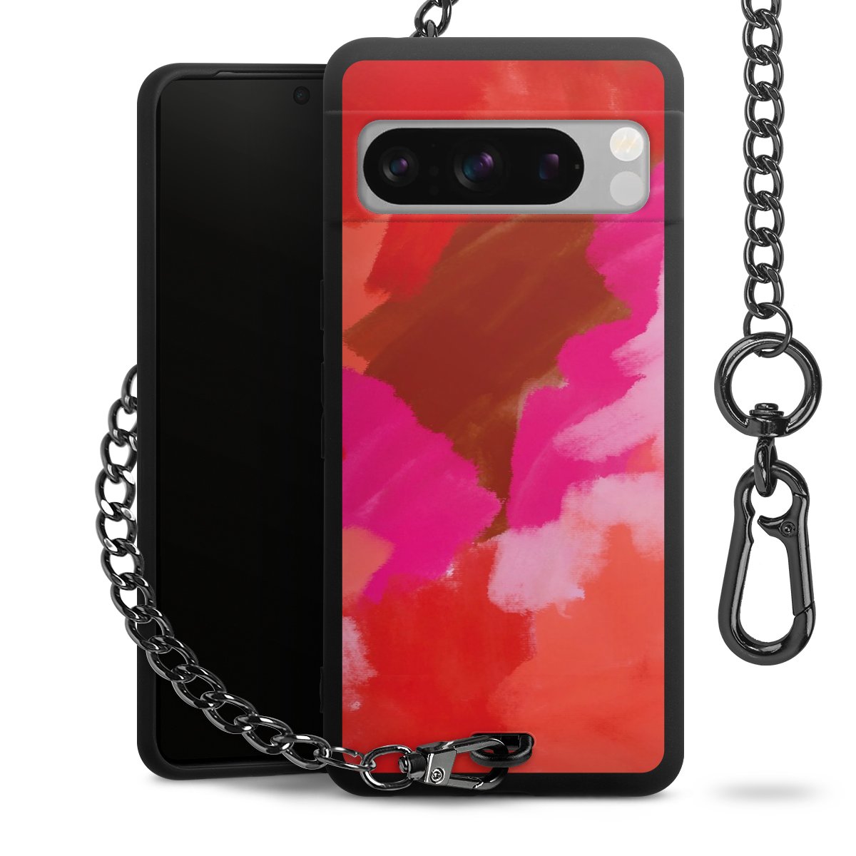 • Mattschwarze Handyhülle mit Metallkette