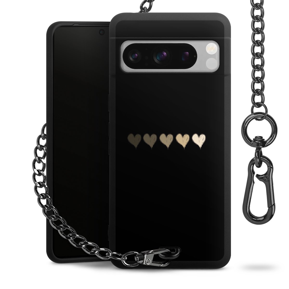 - Mattschwarze Handyhülle mit Metallkette
