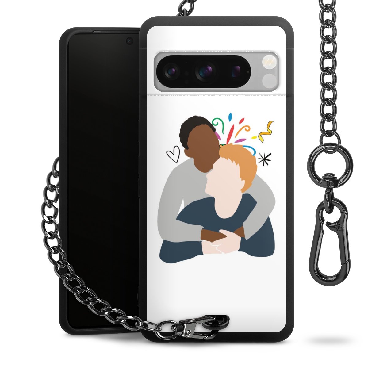 Die mattschwarze Silikon-Handyhülle besteht aus robustem TPU (thermoplastisches Polyurethan). Sie ist flexibel und schützt Dein Smartphone vor Stößen und Kratzern. Die Kette sowie der Karabinerhaken sind aus Metall in Gunmetal-Optik gefertigt. Für dieses Produkt kommen ausschließlich TÜV-geprüfte Materialien zum Einsatz.