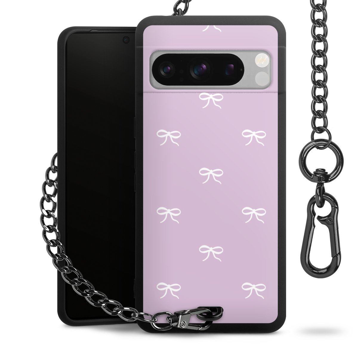• Mattschwarze Handyhülle mit Metallkette