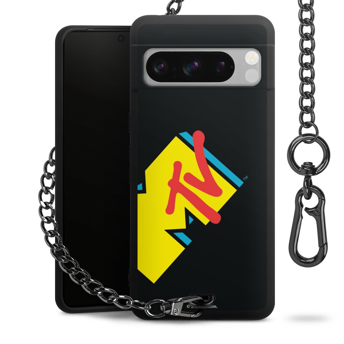 Die mattschwarze Silikon-Handyhülle besteht aus robustem TPU (thermoplastisches Polyurethan). Sie ist flexibel und schützt Dein Smartphone vor Stößen und Kratzern. Die Kette sowie der Karabinerhaken sind aus Metall in Gunmetal-Optik gefertigt. Für dieses Produkt kommen ausschließlich TÜV-geprüfte Materialien zum Einsatz.