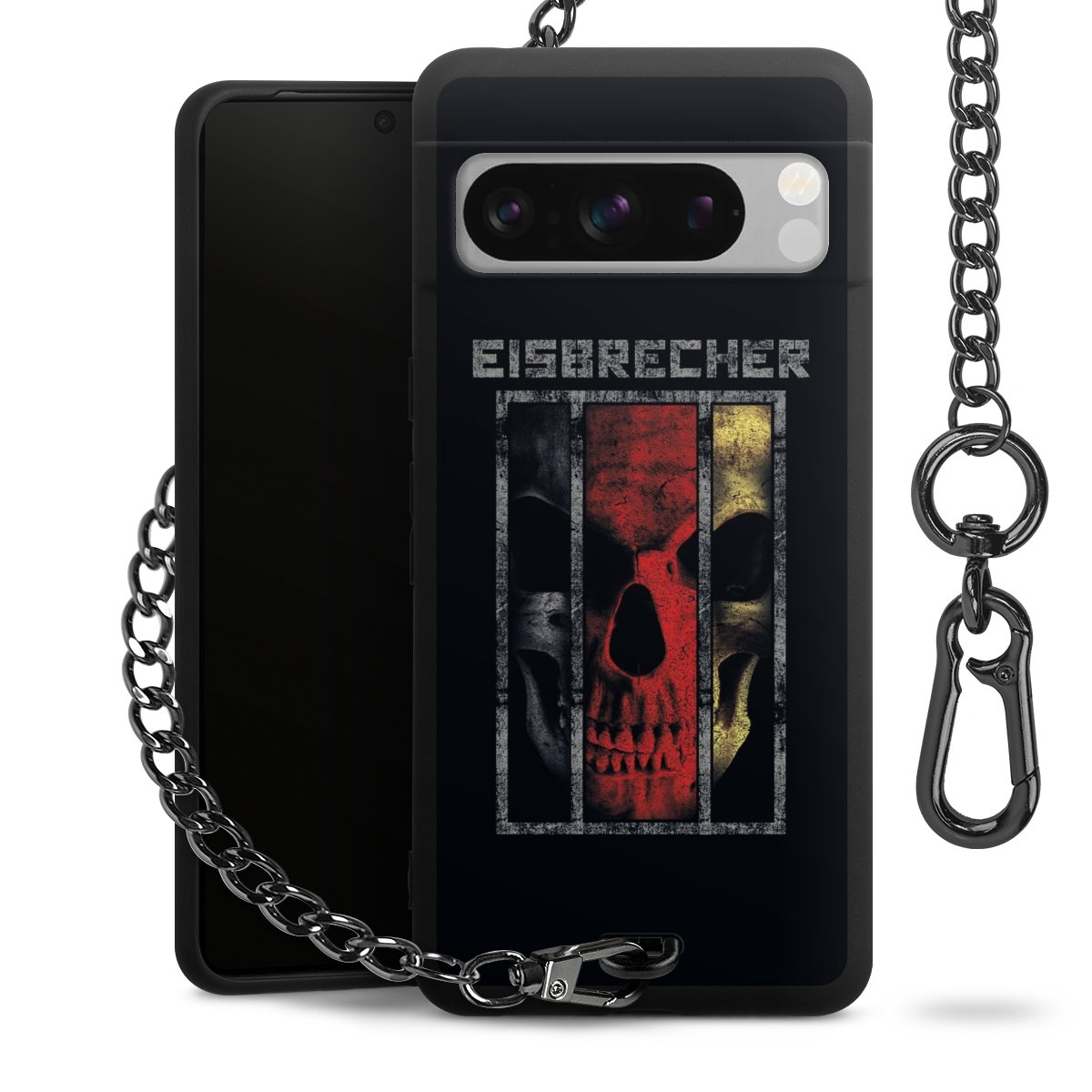Die mattschwarze Silikon-Handyhülle besteht aus robustem TPU (thermoplastisches Polyurethan). Sie ist flexibel und schützt Dein Smartphone vor Stößen und Kratzern. Die Kette sowie der Karabinerhaken sind aus Metall in Gunmetal-Optik gefertigt. Für dieses Produkt kommen ausschließlich TÜV-geprüfte Materialien zum Einsatz.