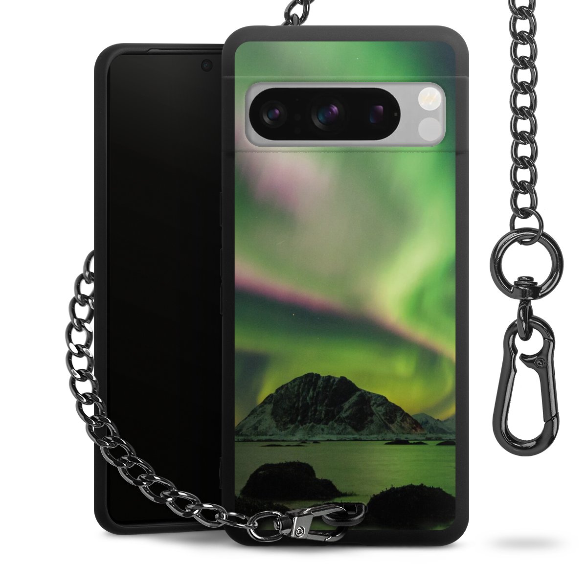 - Mattschwarze Handyhülle mit Metallkette