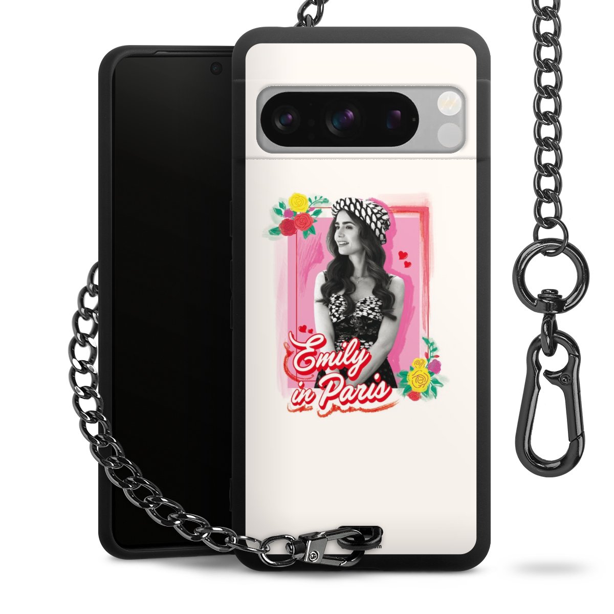 • Mattschwarze Handyhülle mit Metallkette