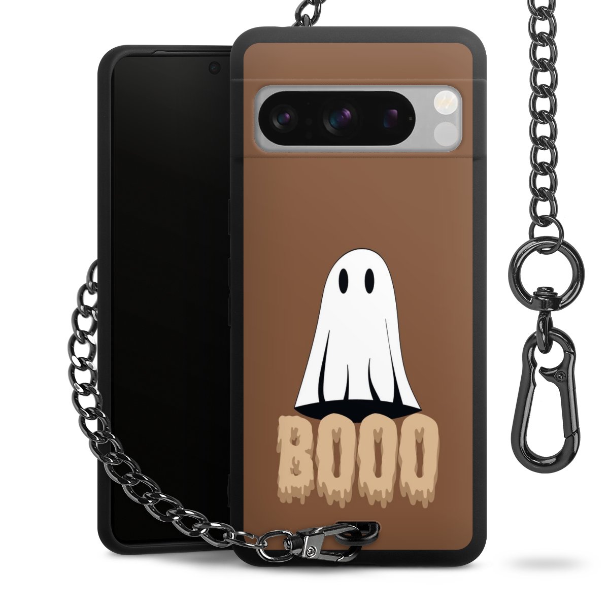 - Mattschwarze Handyhülle mit Metallkette