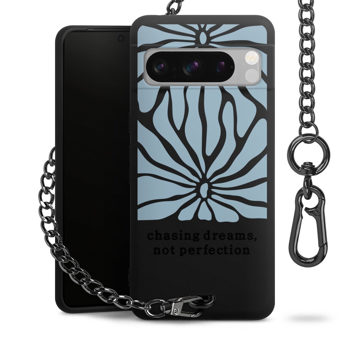 - Mattschwarze Handyhülle mit Metallkette