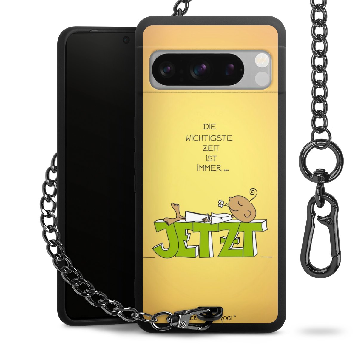 Die mattschwarze Silikon-Handyhülle besteht aus robustem TPU (thermoplastisches Polyurethan). Sie ist flexibel und schützt Dein Smartphone vor Stößen und Kratzern. Die Kette sowie der Karabinerhaken sind aus Metall in Gunmetal-Optik gefertigt. Für dieses Produkt kommen ausschließlich TÜV-geprüfte Materialien zum Einsatz.