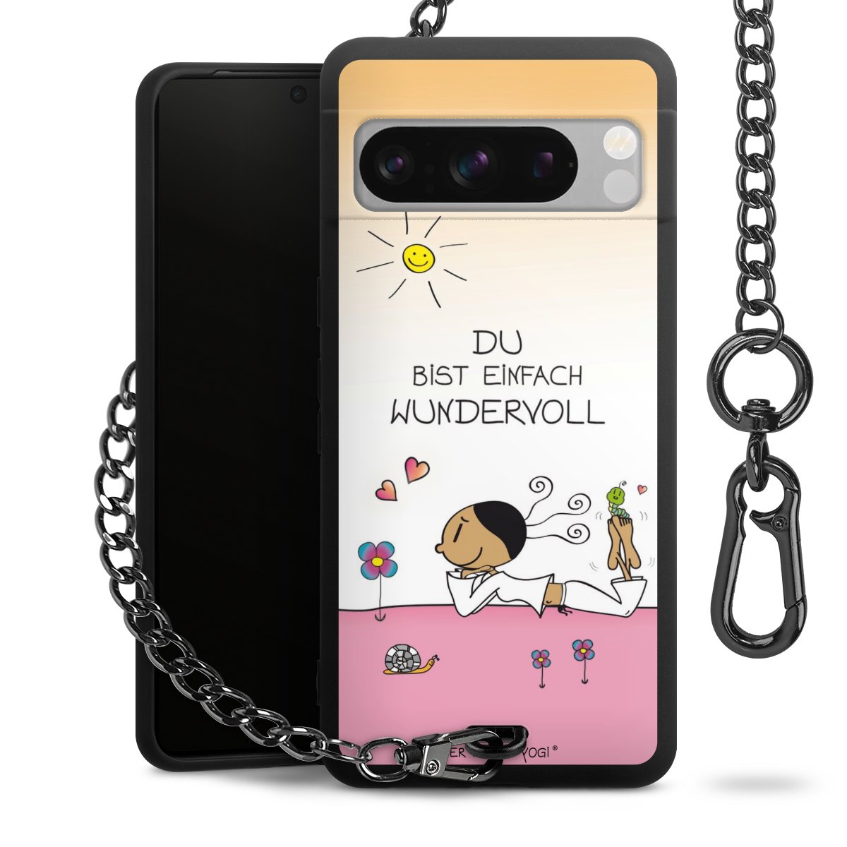 Die mattschwarze Silikon-Handyhülle besteht aus robustem TPU (thermoplastisches Polyurethan). Sie ist flexibel und schützt Dein Smartphone vor Stößen und Kratzern. Die Kette sowie der Karabinerhaken sind aus Metall in Gunmetal-Optik gefertigt. Für dieses Produkt kommen ausschließlich TÜV-geprüfte Materialien zum Einsatz.