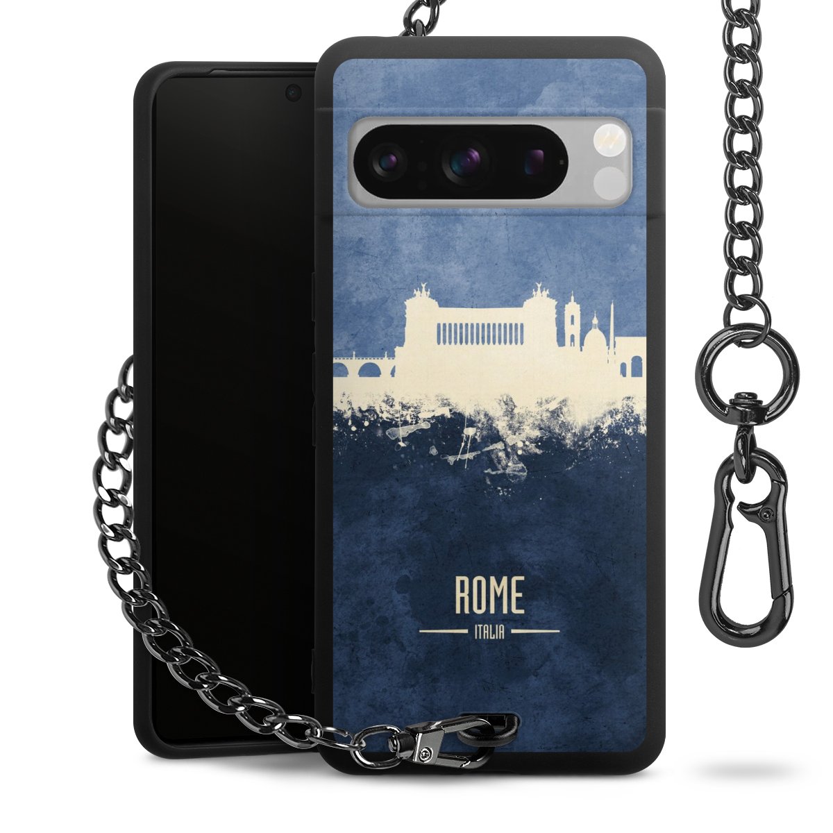 Die mattschwarze Silikon-Handyhülle besteht aus robustem TPU (thermoplastisches Polyurethan). Sie ist flexibel und schützt Dein Smartphone vor Stößen und Kratzern. Die Kette sowie der Karabinerhaken sind aus Metall in Gunmetal-Optik gefertigt. Für dieses Produkt kommen ausschließlich TÜV-geprüfte Materialien zum Einsatz.