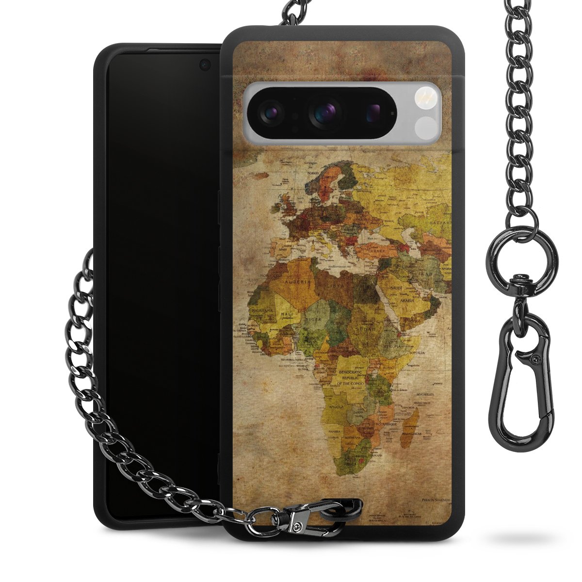 - Mattschwarze Handyhülle mit Metallkette