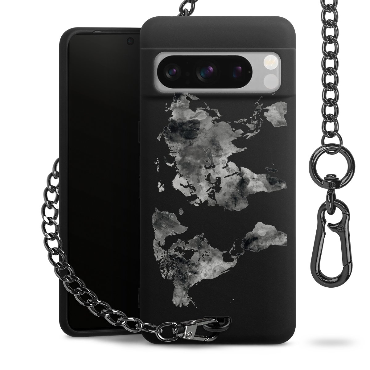 • Mattschwarze Handyhülle mit Metallkette