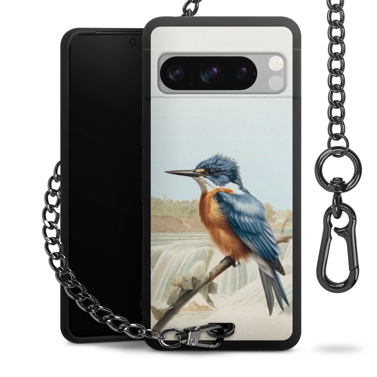 • Mattschwarze Handyhülle mit Metallkette