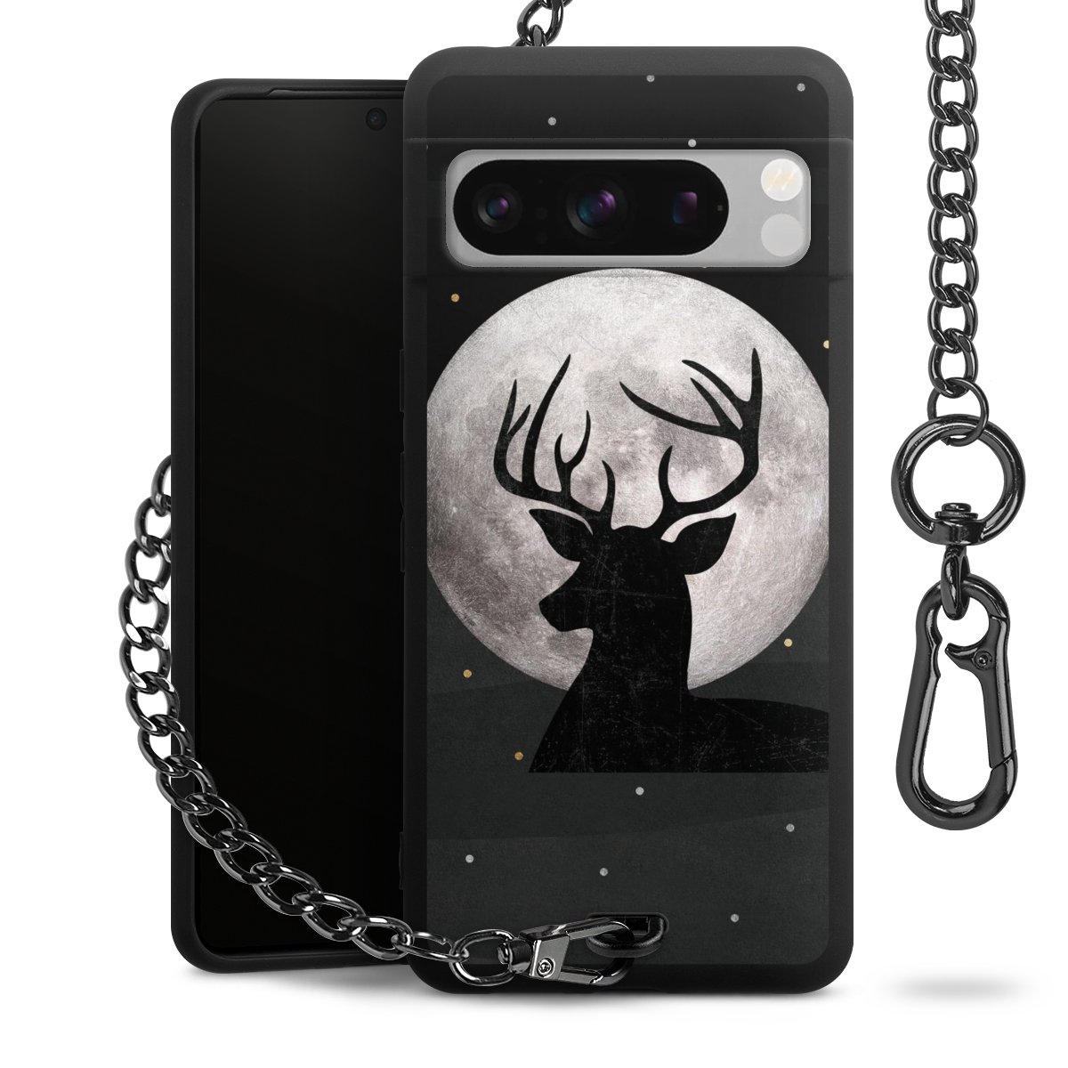 • Mattschwarze Handyhülle mit Metallkette