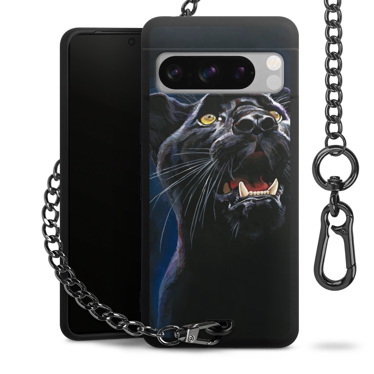 • Mattschwarze Handyhülle mit Metallkette