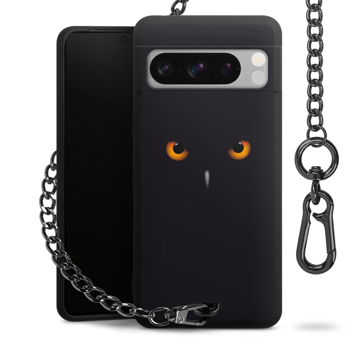 - Mattschwarze Handyhülle mit Metallkette