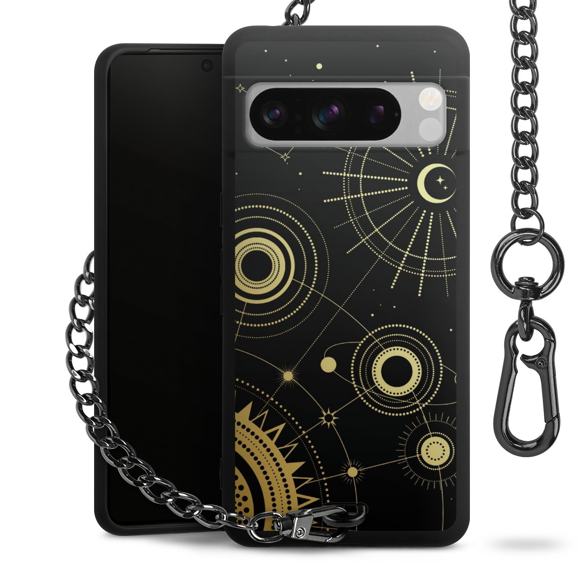 • Mattschwarze Handyhülle mit Metallkette