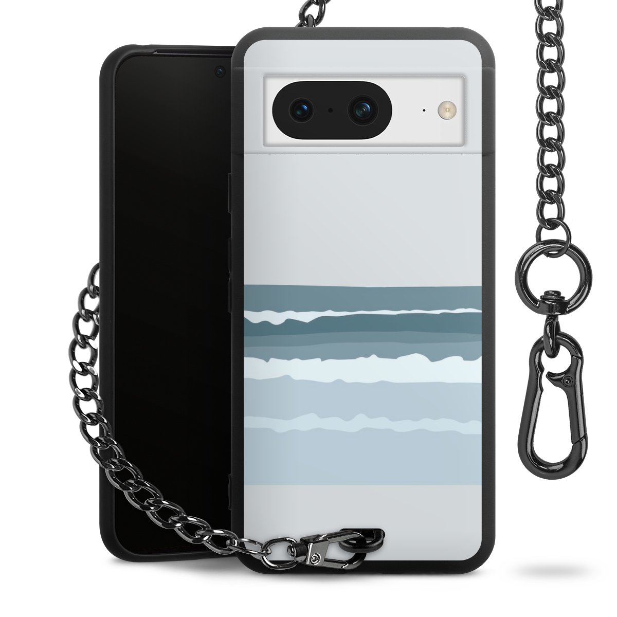 - Mattschwarze Handyhülle mit Metallkette