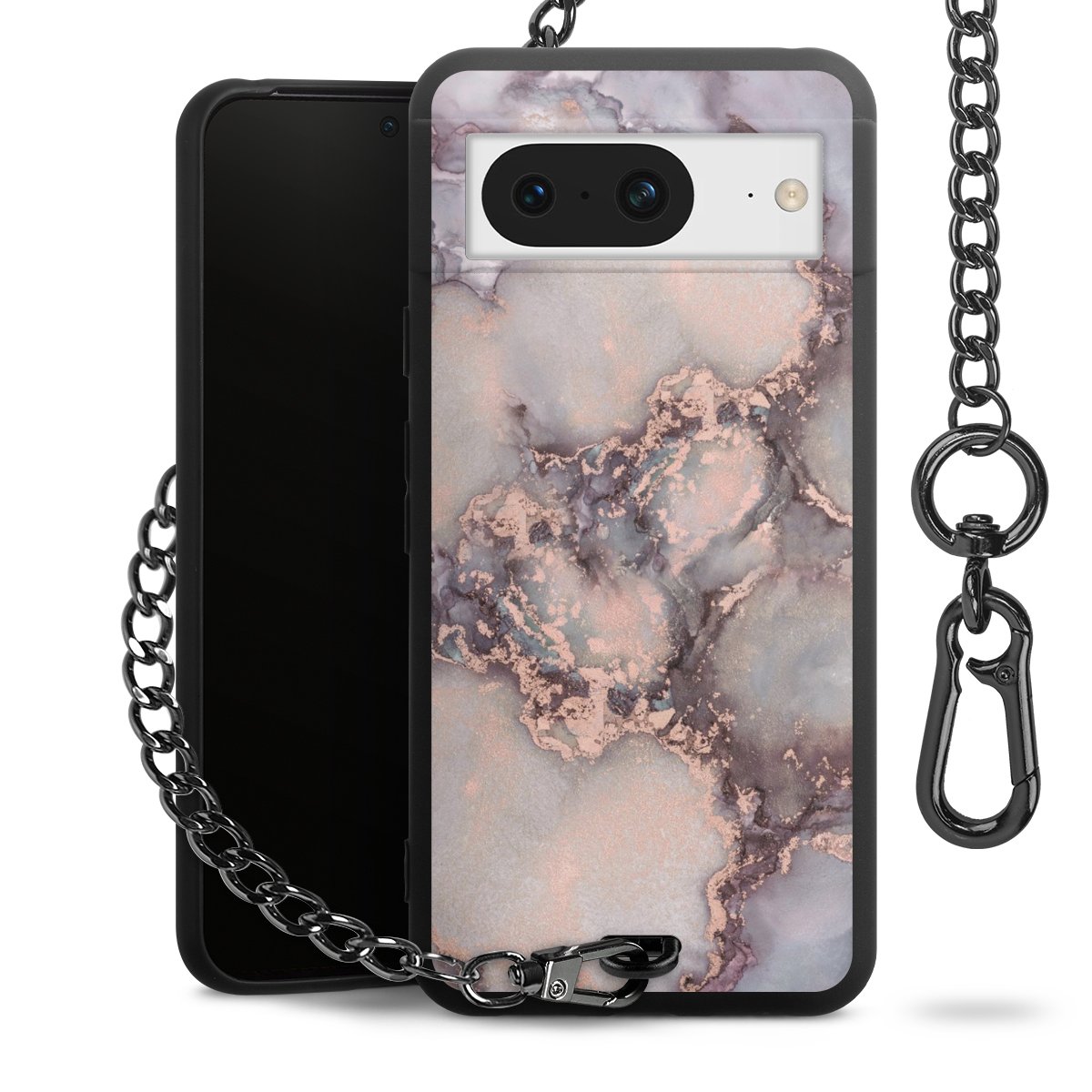 • Mattschwarze Handyhülle mit Metallkette