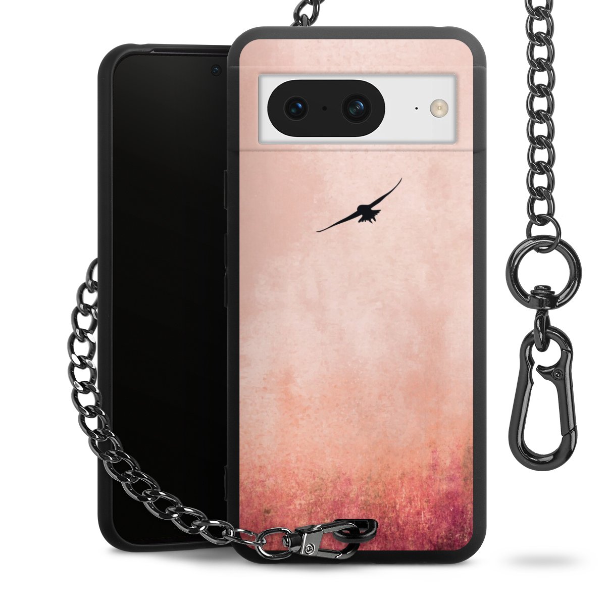 Die mattschwarze Silikon-Handyhülle besteht aus robustem TPU (thermoplastisches Polyurethan). Sie ist flexibel und schützt Dein Smartphone vor Stößen und Kratzern. Die Kette sowie der Karabinerhaken sind aus Metall in Gunmetal-Optik gefertigt. Für dieses Produkt kommen ausschließlich TÜV-geprüfte Materialien zum Einsatz.