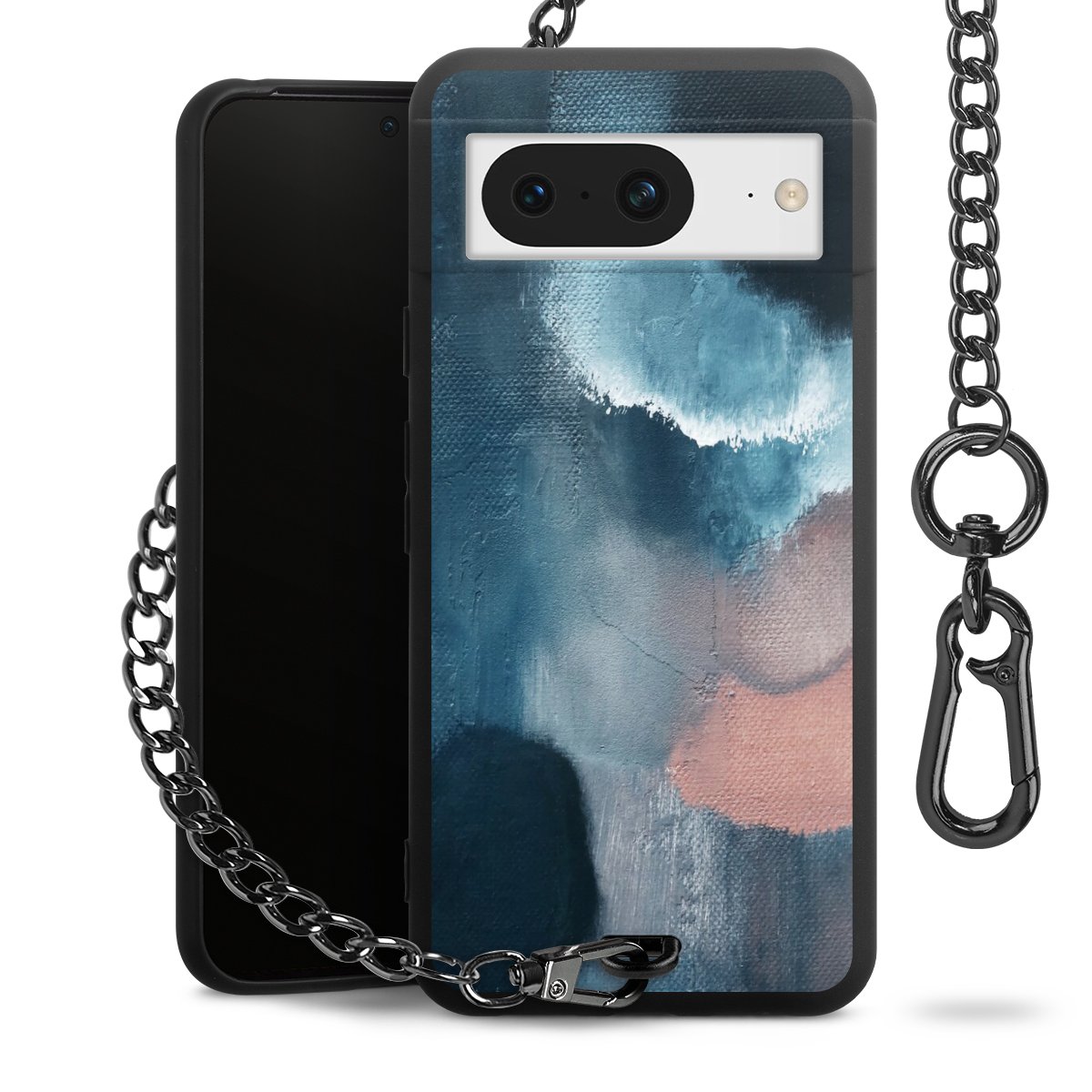 • Mattschwarze Handyhülle mit Metallkette