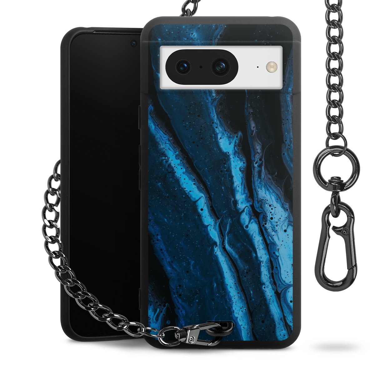- Mattschwarze Handyhülle mit Metallkette