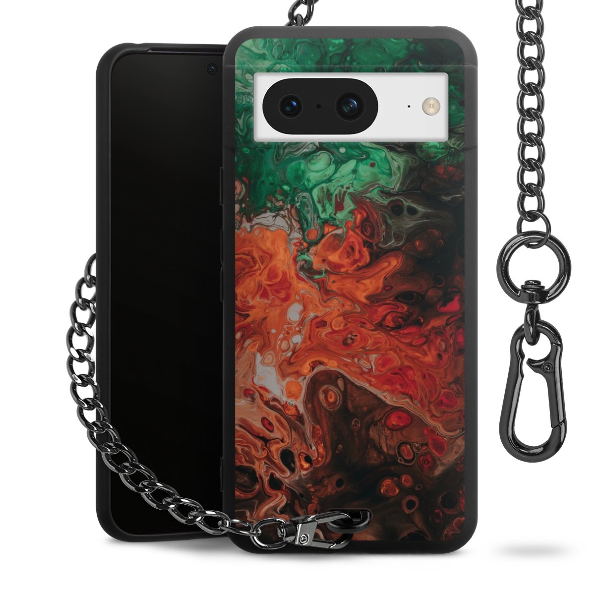 - Mattschwarze Handyhülle mit Metallkette