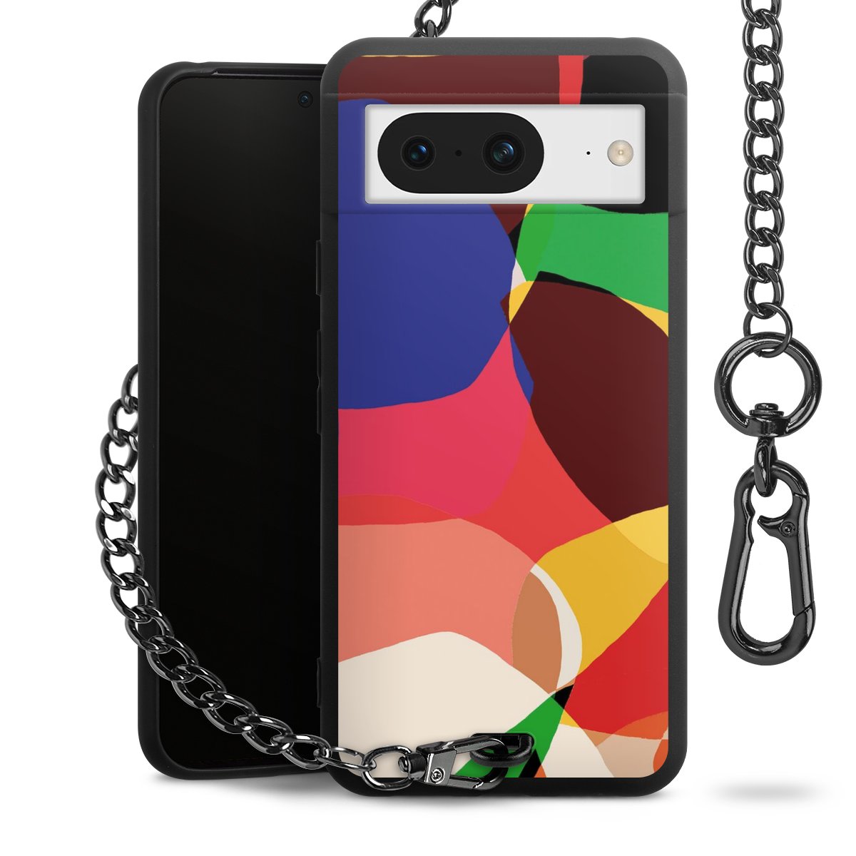 Die mattschwarze Silikon-Handyhülle besteht aus robustem TPU (thermoplastisches Polyurethan). Sie ist flexibel und schützt Dein Smartphone vor Stößen und Kratzern. Die Kette sowie der Karabinerhaken sind aus Metall in Gunmetal-Optik gefertigt. Für dieses Produkt kommen ausschließlich TÜV-geprüfte Materialien zum Einsatz.