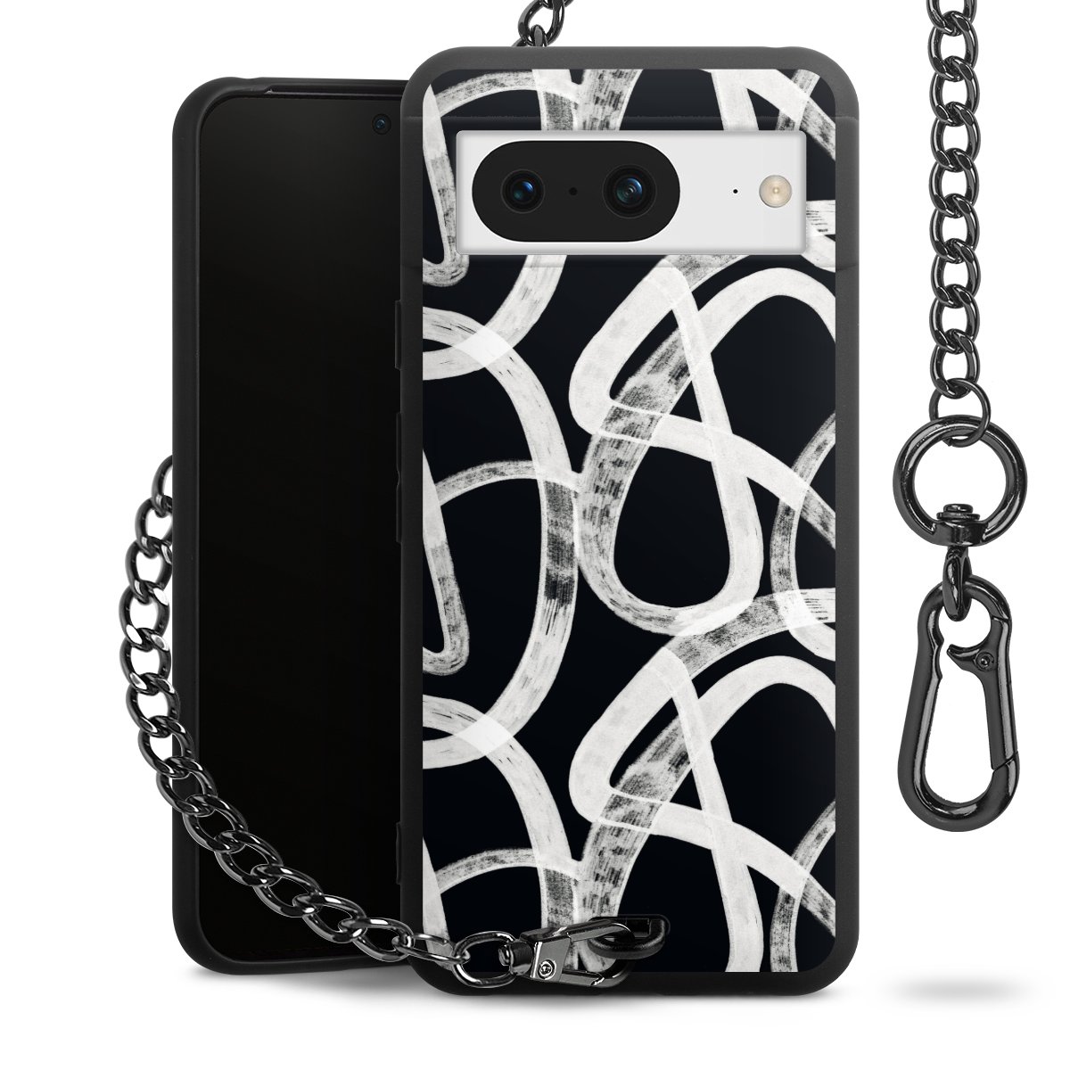 • Mattschwarze Handyhülle mit Metallkette