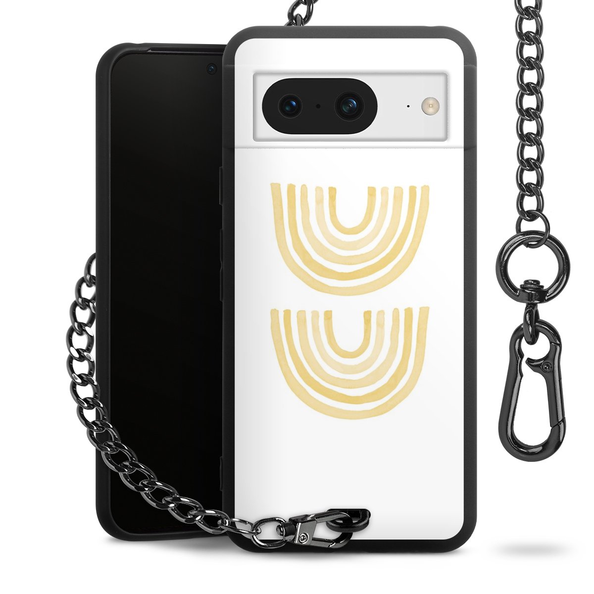 Die mattschwarze Silikon-Handyhülle besteht aus robustem TPU (thermoplastisches Polyurethan). Sie ist flexibel und schützt Dein Smartphone vor Stößen und Kratzern. Die Kette sowie der Karabinerhaken sind aus Metall in Gunmetal-Optik gefertigt. Für dieses Produkt kommen ausschließlich TÜV-geprüfte Materialien zum Einsatz.