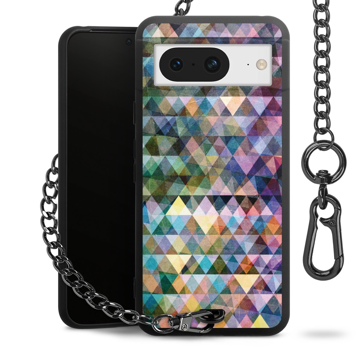 • Mattschwarze Handyhülle mit Metallkette