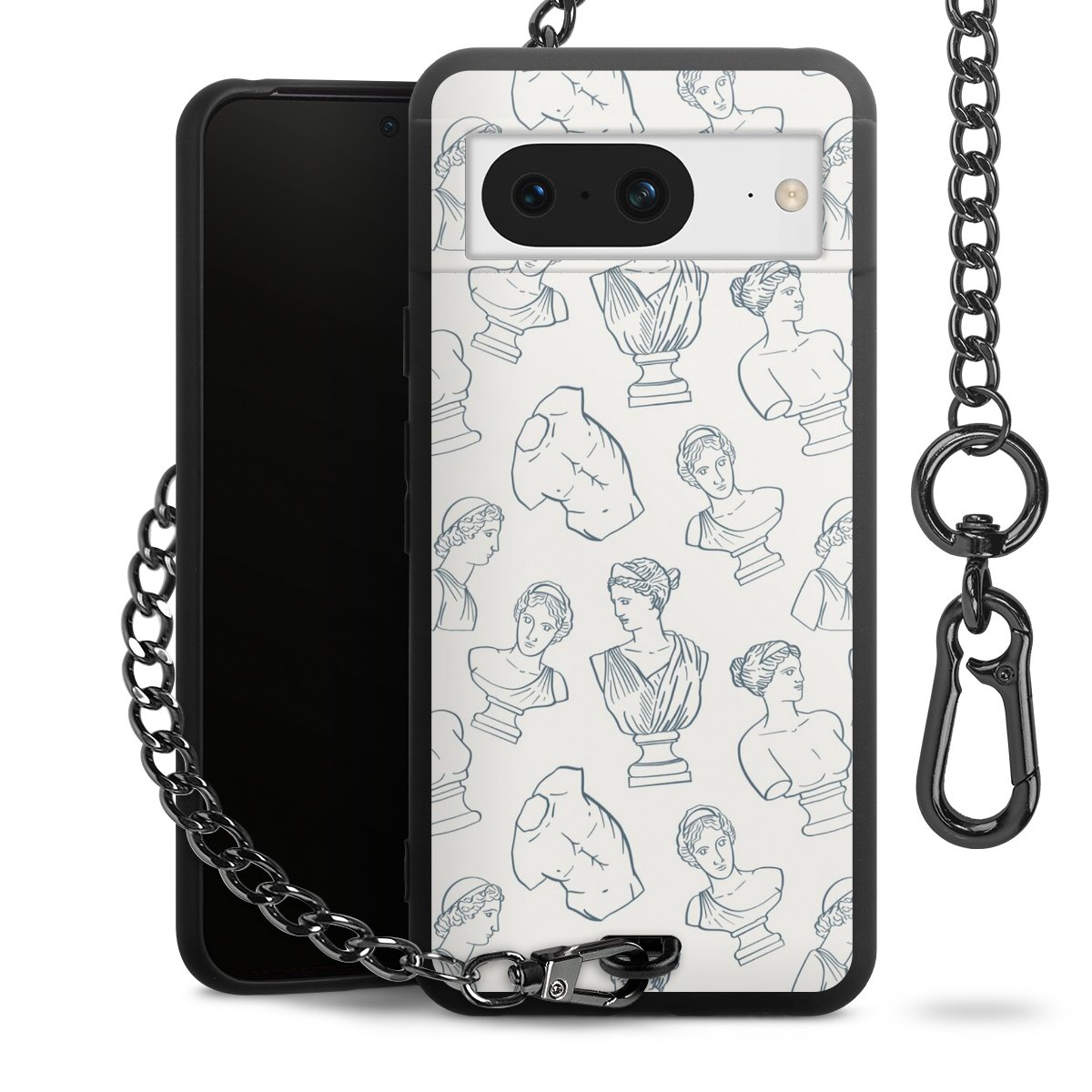 Die mattschwarze Silikon-Handyhülle besteht aus robustem TPU (thermoplastisches Polyurethan). Sie ist flexibel und schützt Dein Smartphone vor Stößen und Kratzern. Die Kette sowie der Karabinerhaken sind aus Metall in Gunmetal-Optik gefertigt. Für dieses Produkt kommen ausschließlich TÜV-geprüfte Materialien zum Einsatz.