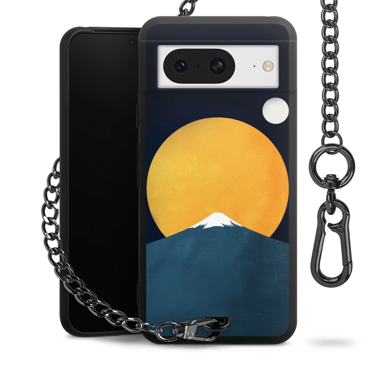 • Mattschwarze Handyhülle mit Metallkette