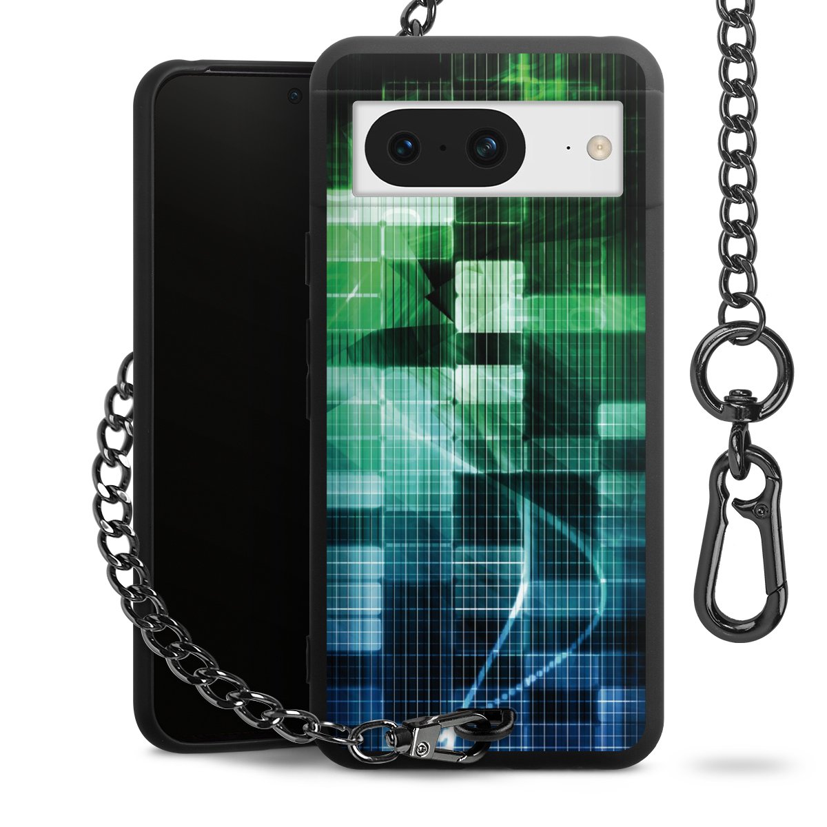 - Mattschwarze Handyhülle mit Metallkette