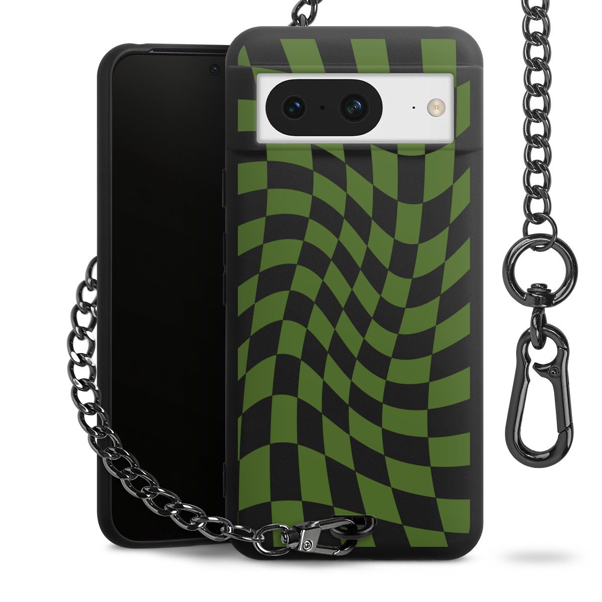 Die mattschwarze Silikon-Handyhülle besteht aus robustem TPU (thermoplastisches Polyurethan). Sie ist flexibel und schützt Dein Smartphone vor Stößen und Kratzern. Die Kette sowie der Karabinerhaken sind aus Metall in Gunmetal-Optik gefertigt. Für dieses Produkt kommen ausschließlich TÜV-geprüfte Materialien zum Einsatz.