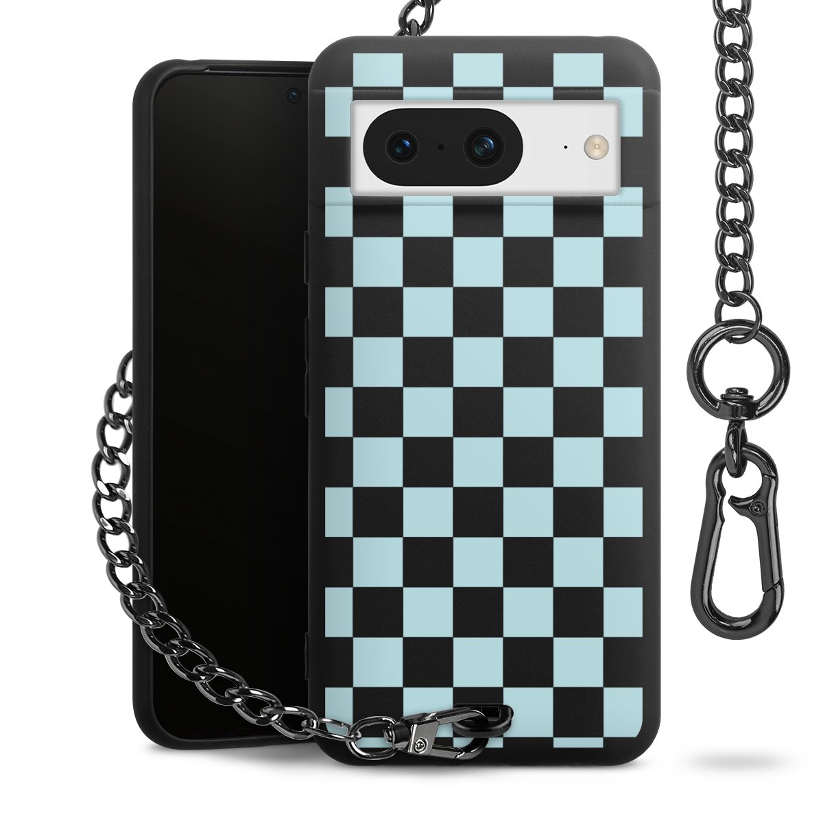 - Mattschwarze Handyhülle mit Metallkette