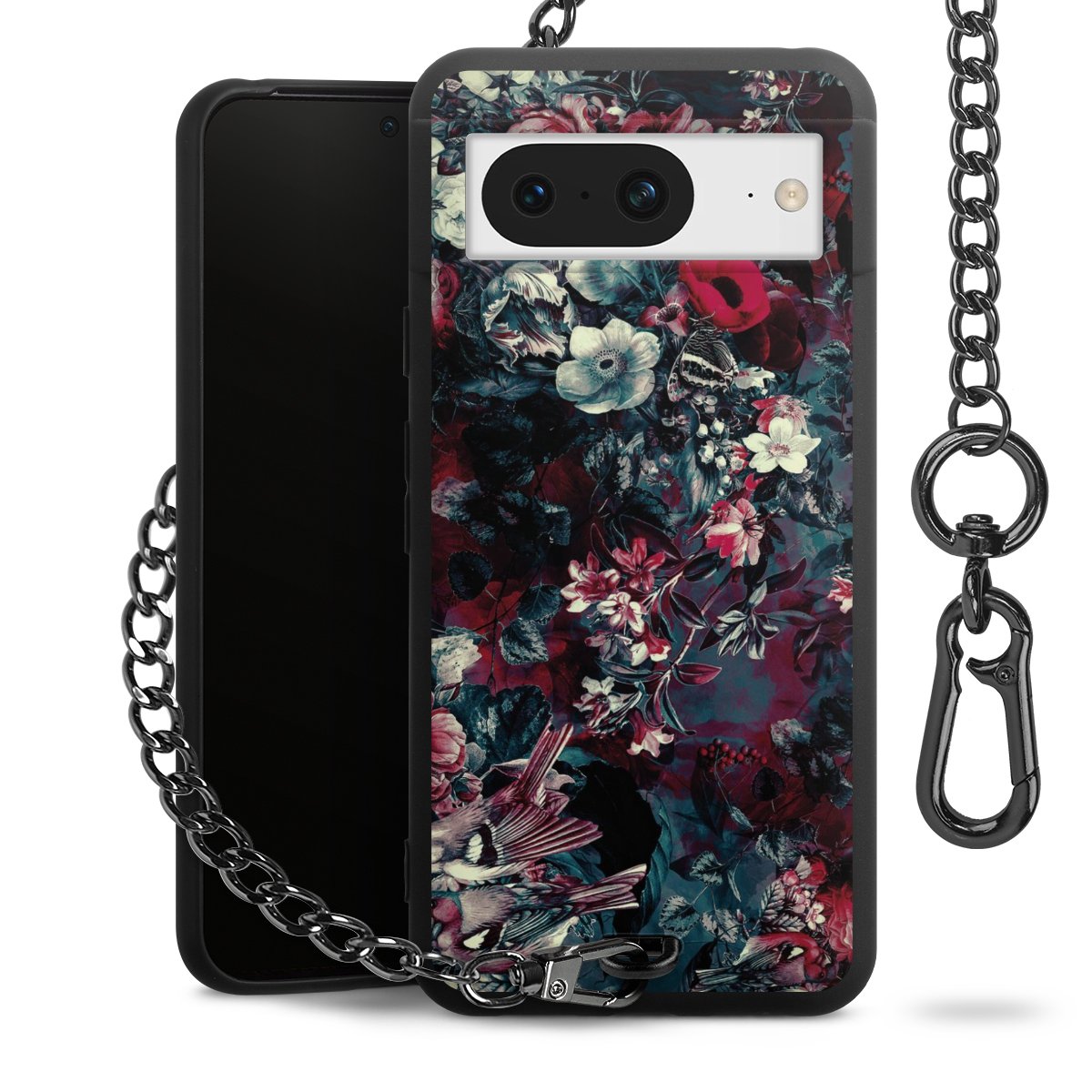 Die mattschwarze Silikon-Handyhülle besteht aus robustem TPU (thermoplastisches Polyurethan). Sie ist flexibel und schützt Dein Smartphone vor Stößen und Kratzern. Die Kette sowie der Karabinerhaken sind aus Metall in Gunmetal-Optik gefertigt. Für dieses Produkt kommen ausschließlich TÜV-geprüfte Materialien zum Einsatz.