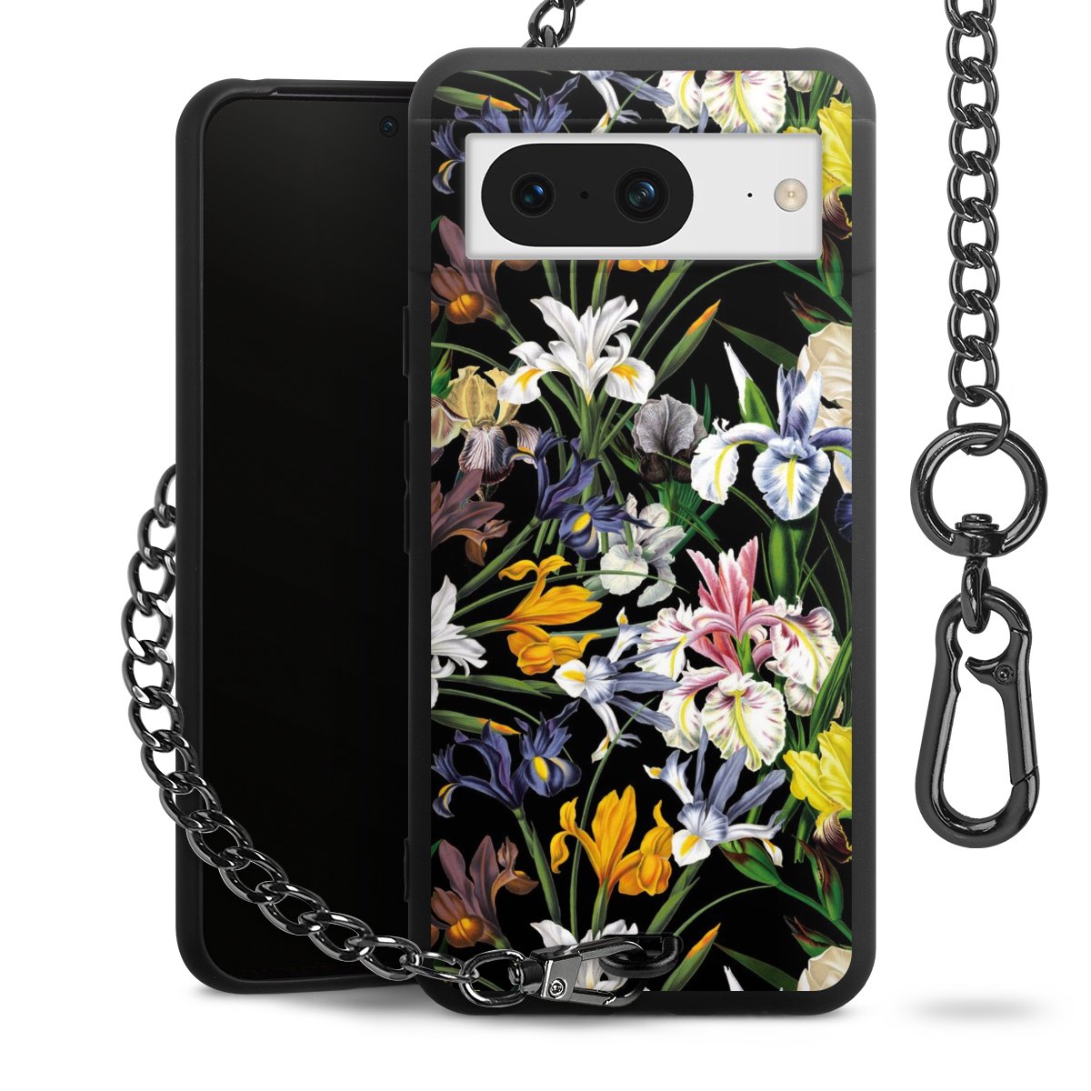 • Mattschwarze Handyhülle mit Metallkette