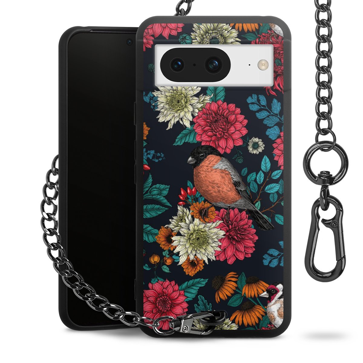 • Mattschwarze Handyhülle mit Metallkette