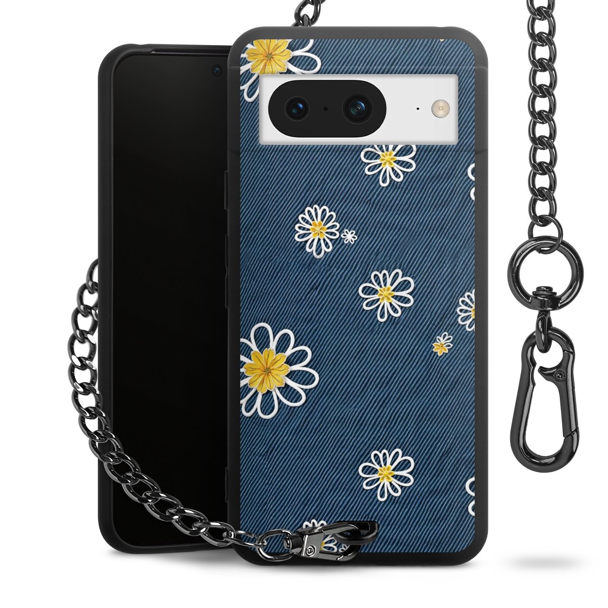 - Mattschwarze Handyhülle mit Metallkette