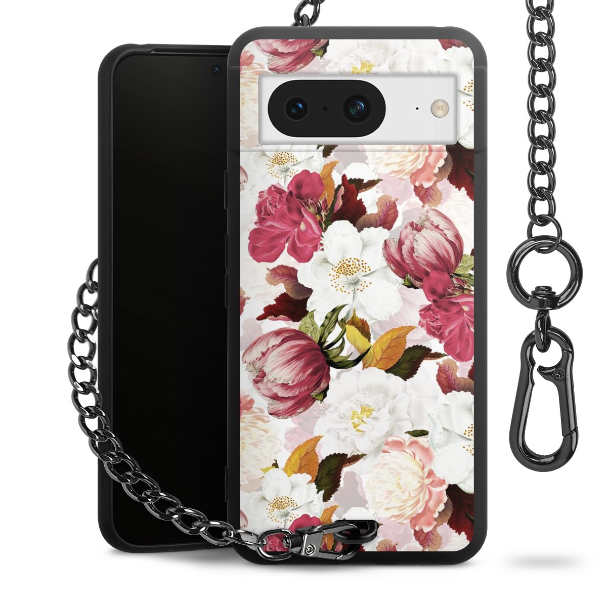 • Mattschwarze Handyhülle mit Metallkette